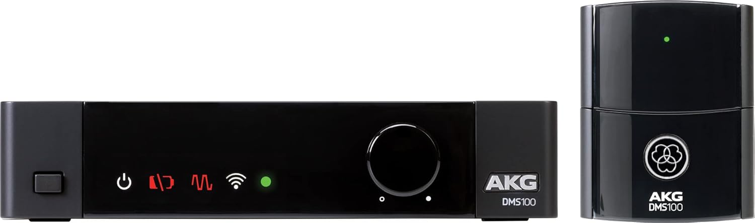 The AKG DMS100 digital wireless system delivers professional-grade audio for performers and presenters. Featuring signature AKG sound quality, 2.4GHz operation, and AES 256-bit encryption, it offers both reliability and security.