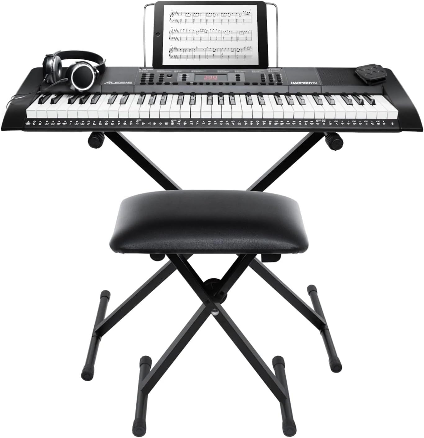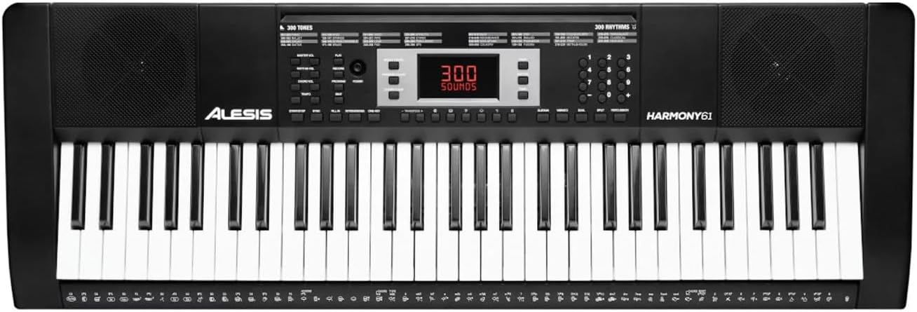 The Alesis Harmony 61-Key Portable Arranger Keyboard is a feature-packed instrument perfect for beginners and music enthusiasts alike. Boasting 61 piano-style keys, built-in speakers, and an extensive library of 300 built-in sounds, it provides a diverse palette for musical exploration. With dual and split modes, 300 rhythms, and a recording function, the Harmony 61 empowers you to create and perform with ease.