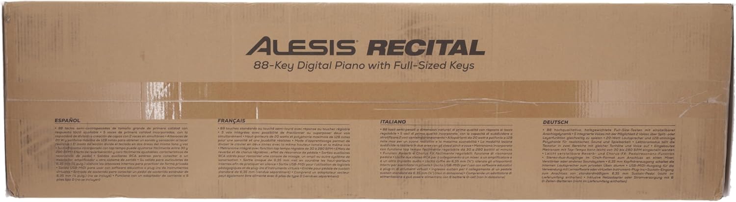 The Alesis Recital is a full-featured digital piano with 88 semi-weighted keys, delivering a premium playing experience. Perfect for beginners and experienced players alike.