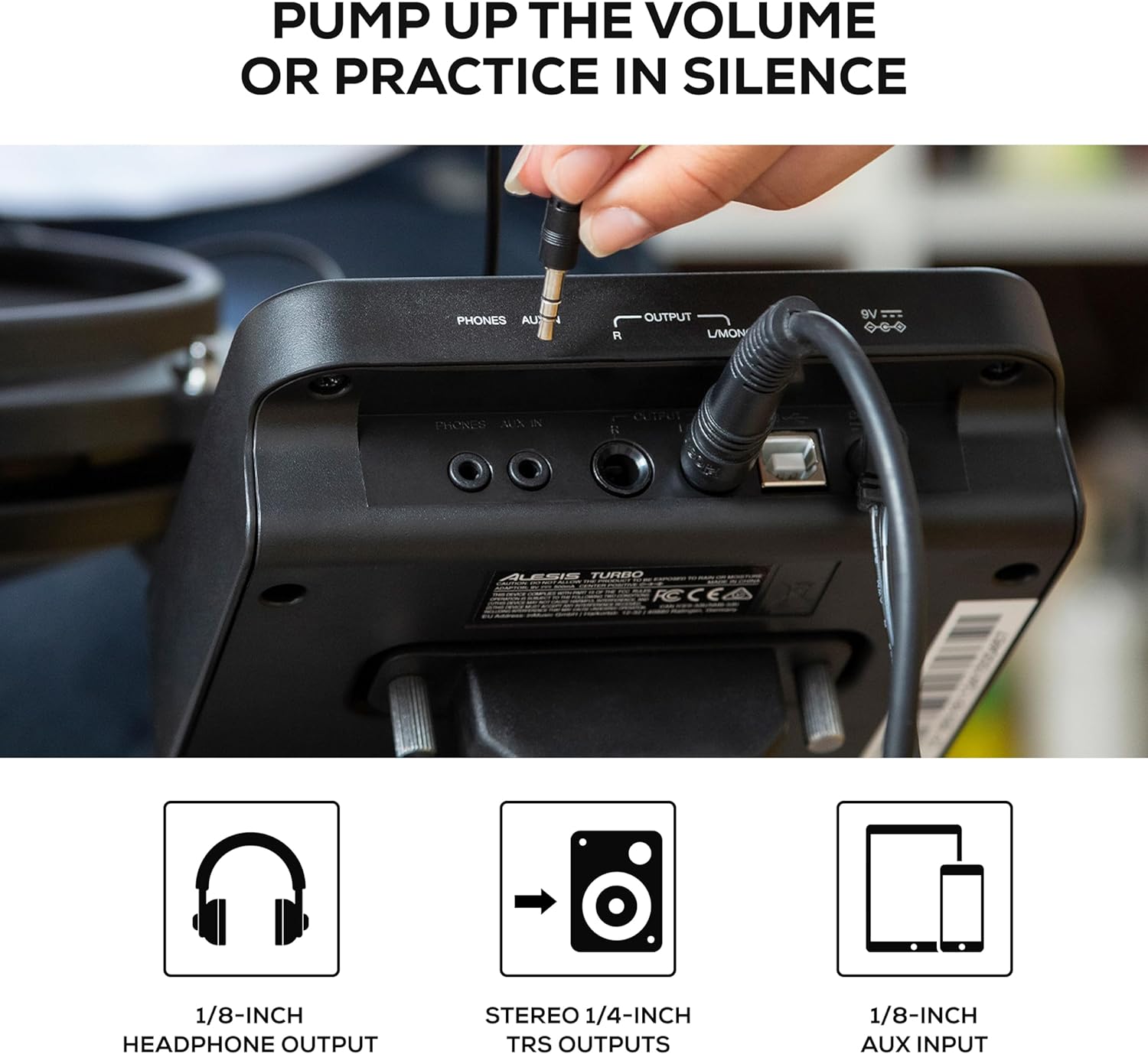 - Module: Turbo Drum Module with 100+ Sounds, 10 Kits, 30 Play-Along Tracks
