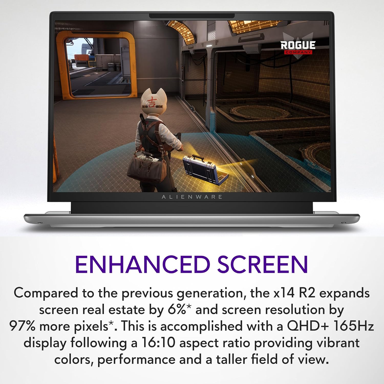The Alienware x14 R2 Gaming Laptop delivers unparalleled portability and performance in a sleek, 14-inch design. Featuring a QHD+ 165Hz display with G-Sync, an Intel Core i7 processor, and an NVIDIA GeForce RTX 4060, this laptop ensures a stunning and immersive gaming experience.