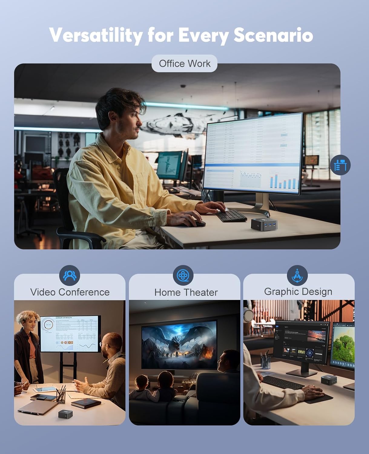 The AOC T8PLUS Mini PC delivers impressive performance in a compact design. Powered by an Intel 12th Gen Alder Lake processor, ample RAM, and a fast SSD, this mini PC is perfect for home, office, and on-the-go use.