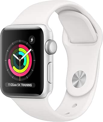 The Apple Watch Series 3 (GPS, 38mm) in Silver Aluminum with a White Sport Band is designed to keep you connected and motivated. Track your fitness, monitor your heart rate, and stay in touch, all from your wrist. Its swimproof design makes it perfect for any activity.