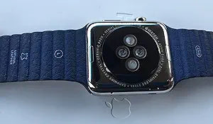 The Apple Watch Gen 1, 42mm Stainless Steel Case with Midnight Blue Leather Loop. Designed for seamless connectivity, this wearable technology brings your iPhone's functionality to your wrist, combining convenience and style in one device.