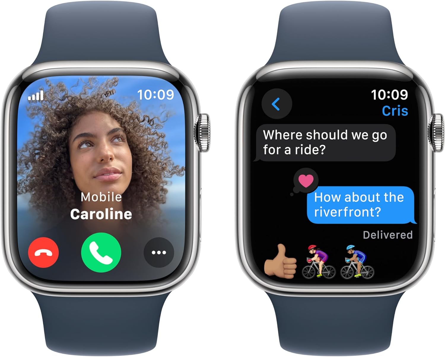 - Health Features: Blood Oxygen app, ECG app, Irregular heart rhythm notifications, Sleep stages tracking, Temperature sensing for cycle tracking