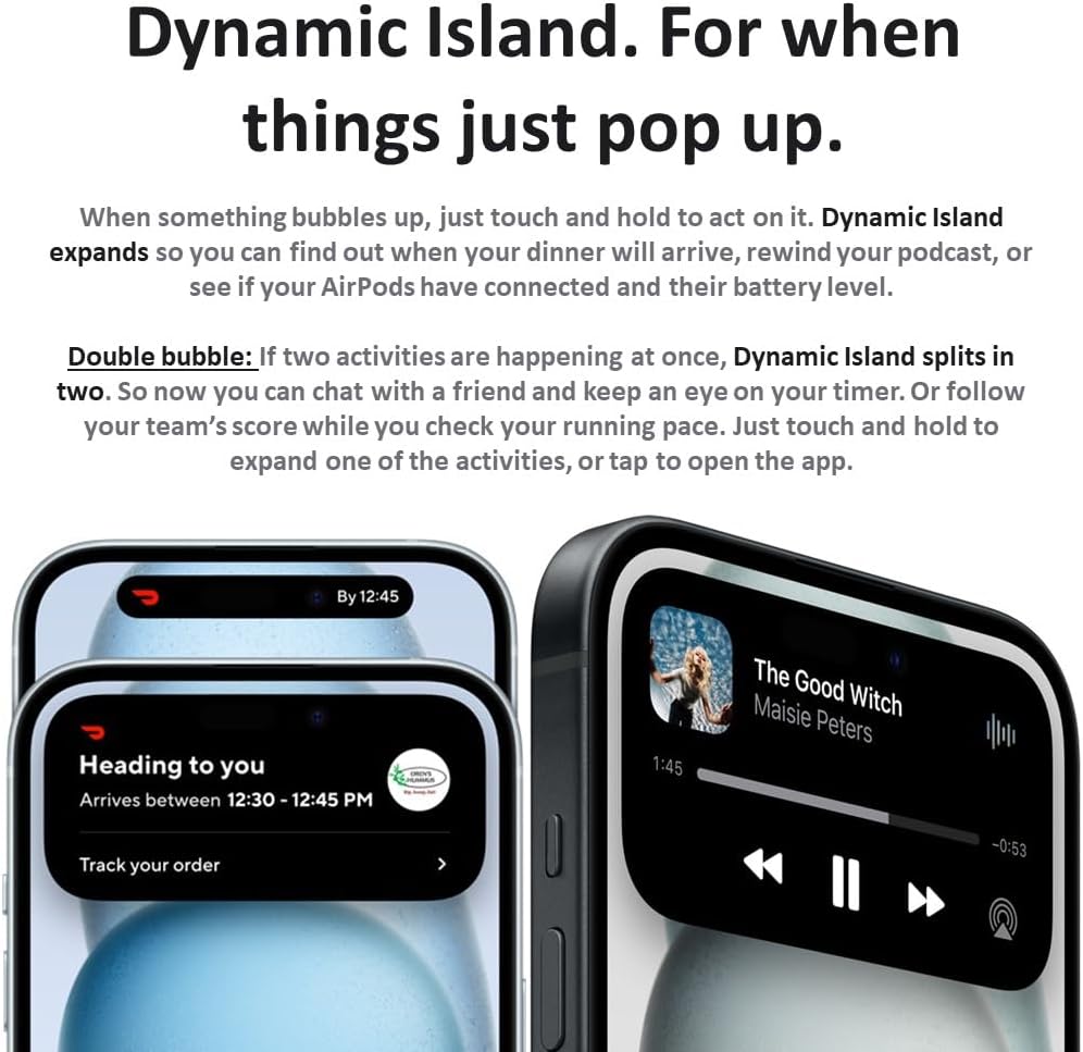* **Display:** 6.1-inch Super Retina XDR display * **Storage:** 256GB * **Chip:** A16 Bionic chip with 5-core GPU * **Camera:** Advanced dual-camera system (48MP Main, Ultra Wide) * **Operating System:** iOS 17 * **Connectivity:** 5G, Wi-Fi, Bluetooth, USB-C * **Additional Features:** Dynamic Island, Emergency SOS via satellite, Crash Detection, Face IDWe partner with Amazon and other retailers to provide accurate product information and convenient access to purchase options. As an Amazon Associate we earn from qualifying purchases.