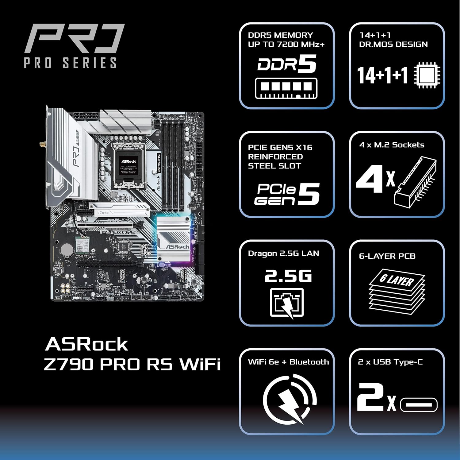 ASRock 90-MXBL50-A0UAYZ Z790 Pro RS WiFi Motherboard