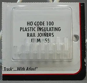 The Atlas Code 100 Insulating Rail Joiners are designed to mechanically join and electrically isolate sections of HO scale train track. These small clips are essential for creating functional and safe model railroad layouts.