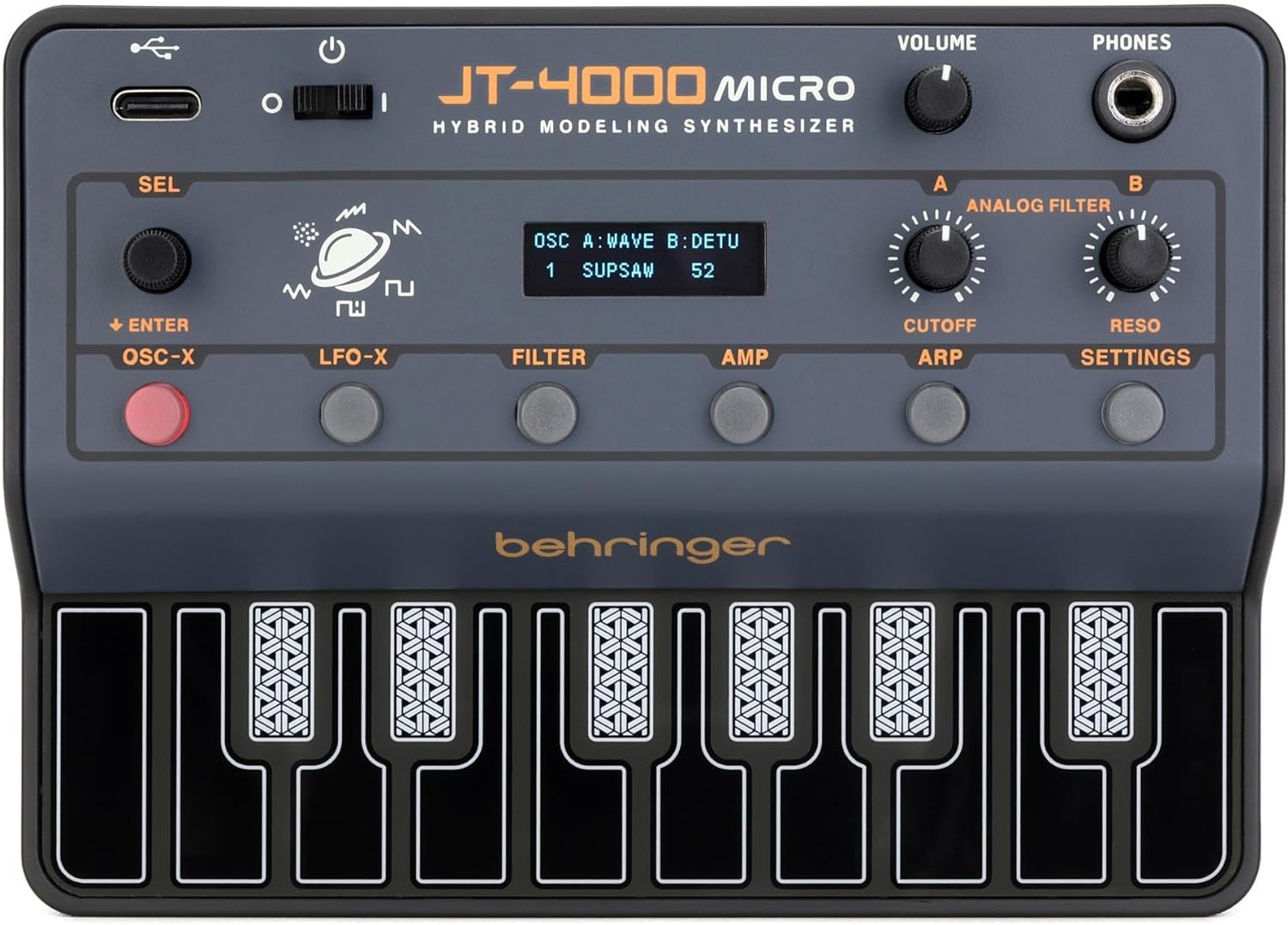 The Behringer JT-4000 Micro Hybrid Modeling Synthesizer packs a punch with its powerful sound and portable design. Perfect for musicians and producers, it offers versatile tone-crafting tools and a user-friendly interface.