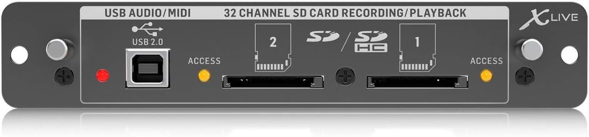 Elevate your Behringer X32 digital mixer with the X-LIVE expansion card. Designed for seamless 32-channel live recording and playback, this card offers dual SD/SDHC card slots and a versatile USB Audio/MIDI interface...