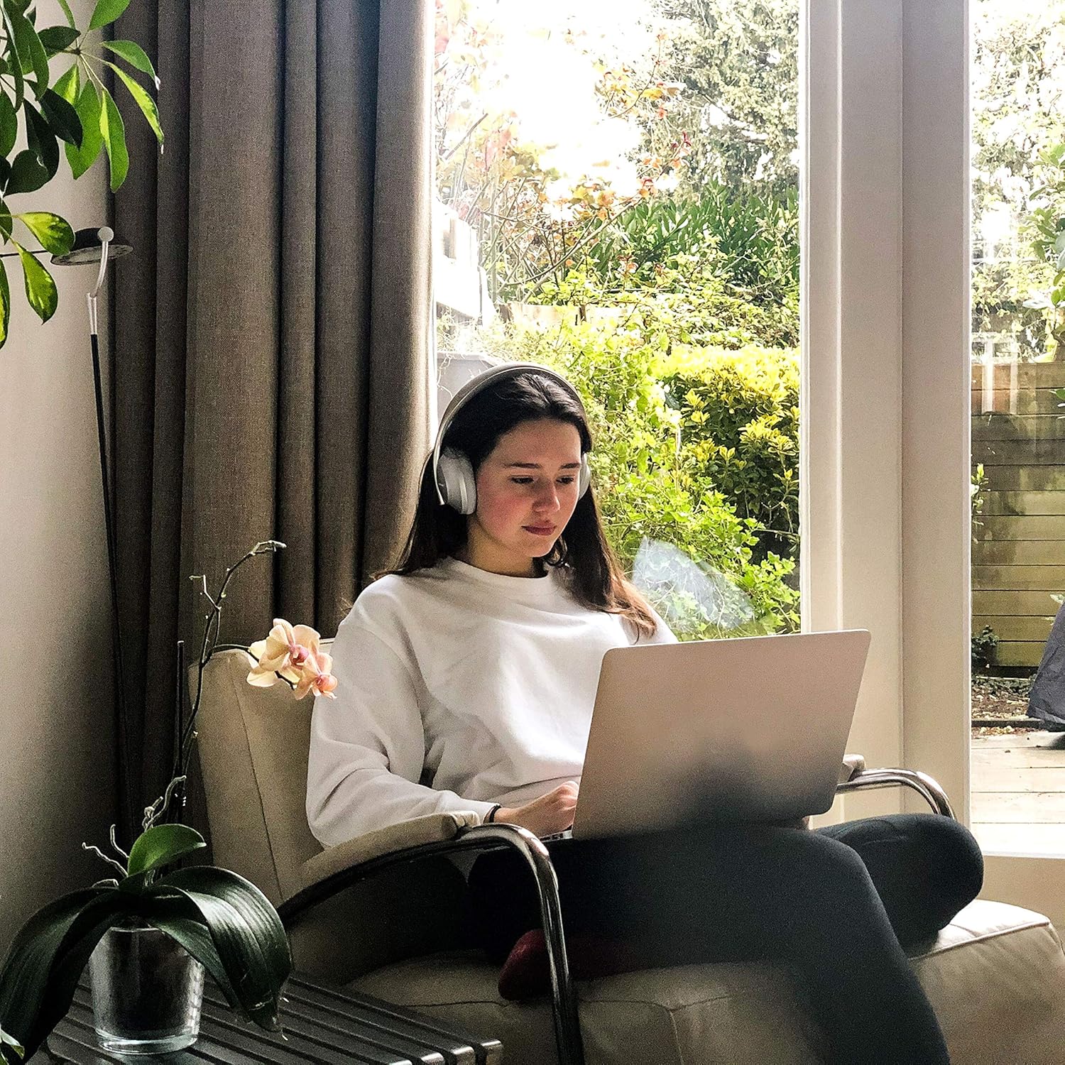 - Comfort: Streamlined, lightweight stainless-steel headband and angled ear cups