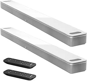 Immerse yourself in stunning, room-filling sound with the Bose Smart Soundbar 900. This soundbar supports Dolby Atmos for a theater-like experience, creating sound from every direction, even overhead. Bose TrueSpace technology intelligently analyzes and upmixes non-Atmos content for an immersive 7-channel experience. Its elegant design, featuring a tempered glass top and wraparound metal grille, complements any décor.
