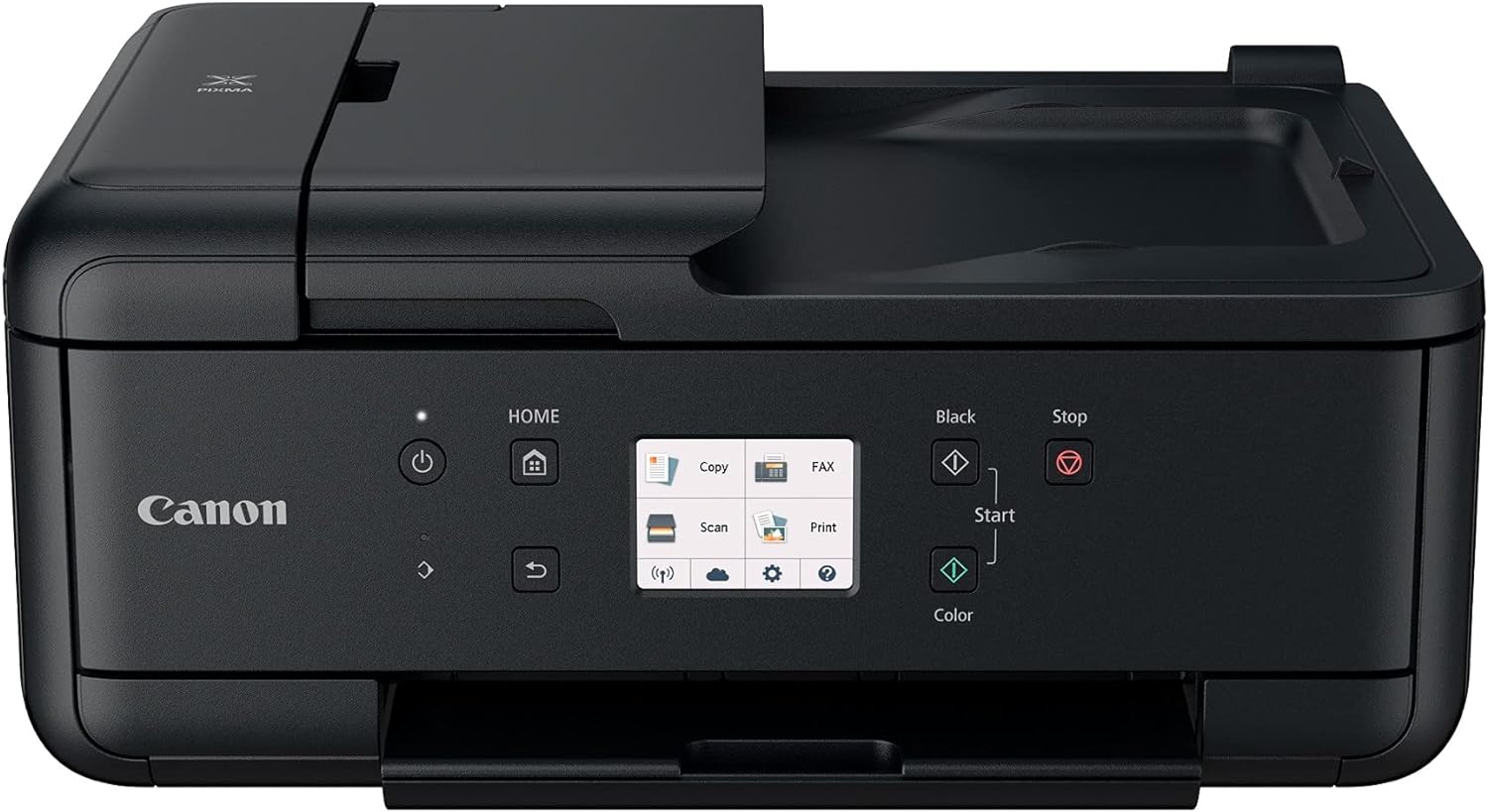 * Functions: Print, Copy, Scan, Fax * Ink System: 5-Color Individual Ink System * Connectivity: Wireless, AirPrint, Google Cloud Print, Bluetooth * Display: 3.0" LCD Touchscreen * Automatic Document Feeder: 20-Sheet ADF * Paper Capacity: Front paper cassette 100 sheets of plain paper; rear paper tray 100 sheets of plain paper or 20 sheets of 4 x 6 / 10 sheets of 5 x 7 photo paper * Dimensions: 14.4"D x 17.3"W x 7.5"H * Controller Type: Vera, Amazon Alexa * Maximum Media Size: 8.5 x 14 inch * Hardware Interface: USB 2.0 * Dual-sided printing: Yes * Duplex: Yes * Memory Storage Capacity: 64 MB * Print media: Paper (plain), Glossy photo paper * Scanner Type: Sheetfed * Max Input Sheet Capacity: 20 * Display Type: LCD * Compatible Devices: Printer * Sheet Size: 14.4 * Additional Printer functions: Copy, Scan, Fax * Control Method: Voice * Processor Count: 1 * Specific Uses For Product: Office, home office, Home * UPC: 013803290707 * Global Trade Identification Number: 00013803290707 * Item Weight: 17.3 pounds * Manufacturer: Canon USA Inc. * ASIN: B074V5CMYK * Item model number: 2232C002 * Is Discontinued By Manufacturer: No * Date First Available: August 22, 2017 * Connectivity Technology: USB * Printing Technology: Inkjet * Special Feature: With a built-in Wi-Fi and available connectivity options print anywhere from the house, Enjoy printing from your devices using Airprint and Canon Print AppSee more * Color: Black * Model Name: Canon * Printer Output: Color * Maximum Print Speed (Color): 40 ppm * Max Printspeed Monochrome: 40We partner with Amazon and other retailers to provide accurate product information and convenient access to purchase options. As an Amazon Associate we earn from qualifying purchases.