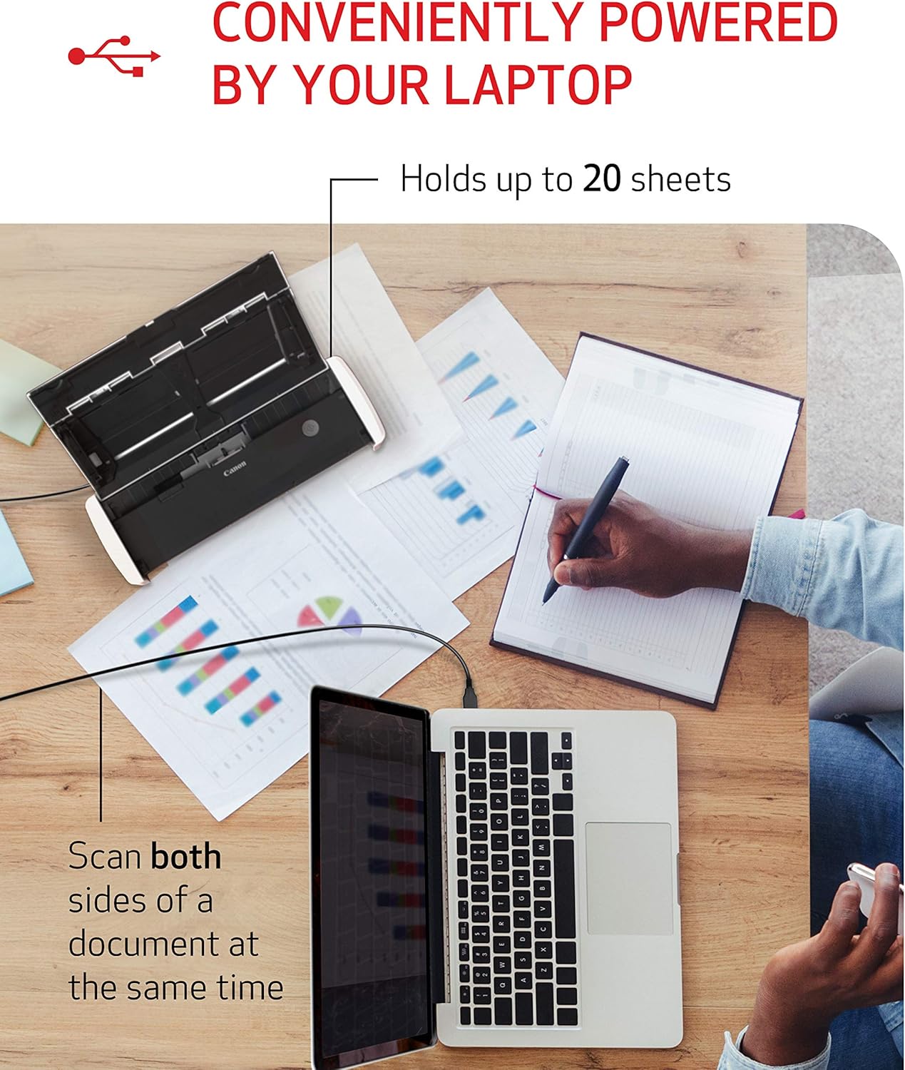 Specifications: * Scanner Type: Portable Document Scanner * Connectivity: USB * Scanning: Duplex (Two-Sided) * Document Feeder: 20 Sheet Automatic Feeder * Scanning Speed: Up to 12 pages-per-minute * Compatibility: Windows and Mac * Software: Built-in Scanning Software (No Installation Required) * Media Types: Receipts, Business Cards, Plastic Cards, Reports, Legal Documents * Resolution: 600 dpi * Dimensions: 3.75 x 11.2 x 1.57 inches * Weight: 2.2 pounds (998 Grams) * Power Consumption: 2.5W or less (Energy Saving Mode 0.7W) * Sheet Size: 8.5 x 14"We partner with Amazon and other retailers to provide accurate product information and convenient access to purchase options. As an Amazon Associate we earn from qualifying purchases.