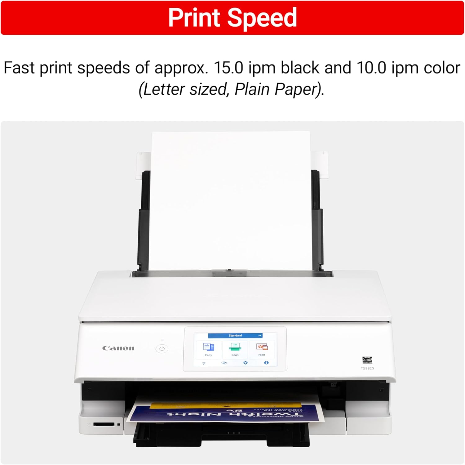 - Print Speed: Approximately 15 (black) / 10 (color) images per minute