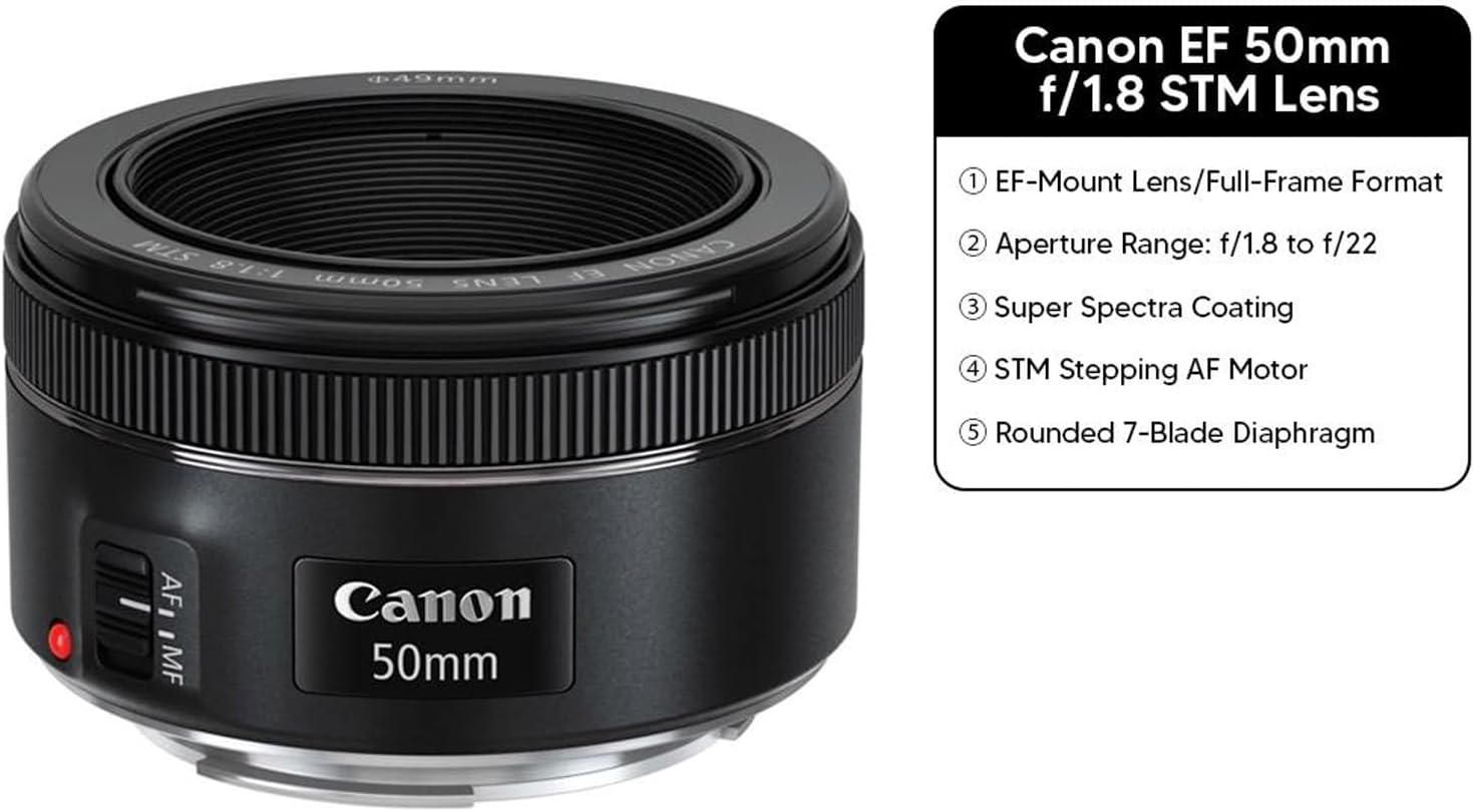 - Lenses Included: Canon EF 50mm f/1.8 STM, EF 75-300mm f/4-5.6 III, 500mm f/8 Preset Telephoto