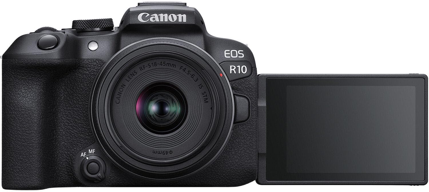 **Specifications:** * Camera: Canon EOS R10 Mirrorless (Renewed) * Lens 1: Canon RF-S 18-45mm f/4.5-6.3 IS STM * Lens 2: Canon EF 75-300mm f/4-5.6 III * Sensor: 24.2MP APS-C CMOS * Image Processor: DIGIC X * Continuous Shooting: Up to 23 fps (electronic shutter), 15 fps (mechanical shutter) * Video: UHD 4K Recording * ISO: Expanded ISO Minimum 100, Expanded ISO Maximum 102400 * Connectivity: Wi-Fi * Mount Compatible: Canon RF, Canon EF * Included: T Mount Adapter, Wide Angle Lens, Telephoto Lens, Filter Set, 2 Transcend 64 GB SD Memory Cards, Slave Flash, Tripod, Camera Case, Lens Caps, Hoods, Battery Pack, Battery Charger, Cleaning Kit.We partner with Amazon and other retailers to provide accurate product information and convenient access to purchase options. As an Amazon Associate we earn from qualifying purchases.