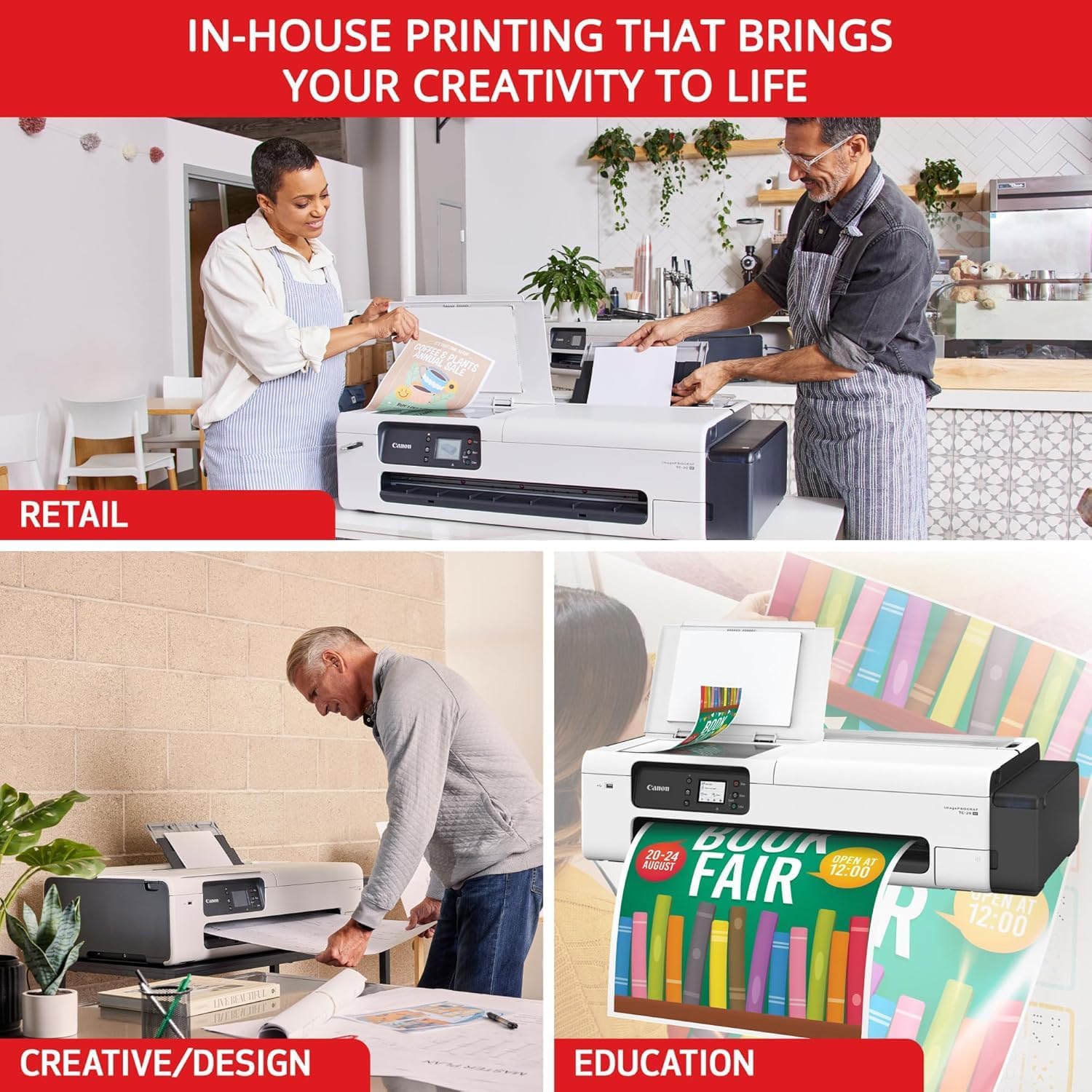 The Canon imagePROGRAF TC-20M is a versatile multifunction printer designed for large-format printing and scanning. With its integrated flatbed scanner and automatic roll/cut sheet paper feeder, this printer offers unparalleled flexibility and convenience. Ideal for creating posters, flyers, technical documents, and more, the TC-20M is a valuable addition to any office, classroom, or retail environment.