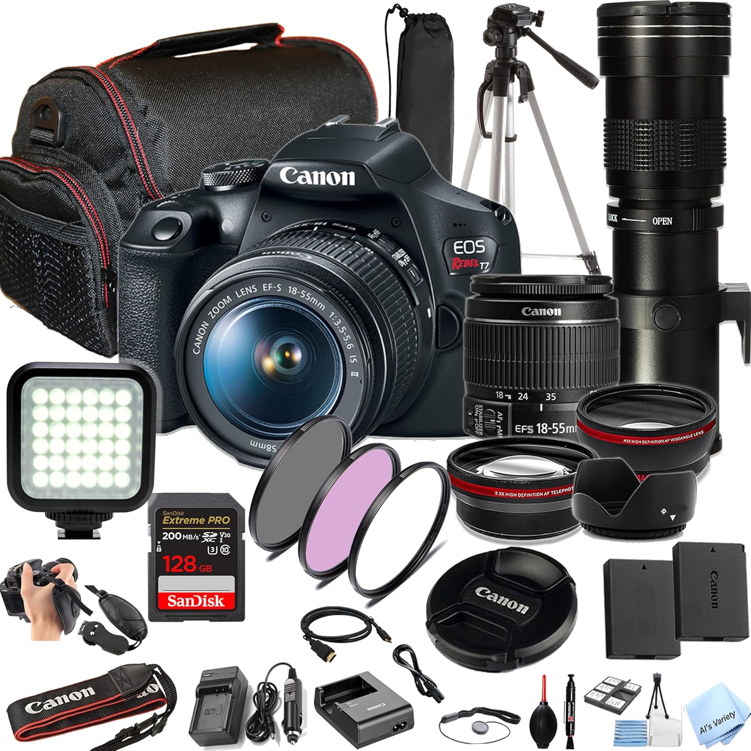 - Camera: Canon EOS Rebel T7 DSLR Camera Body
