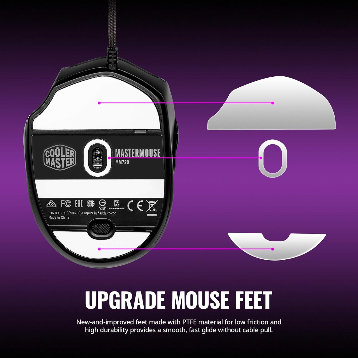Introducing the Cooler Master MM720, a lightweight gaming mouse engineered for exceptional performance and comfort. With its ultraweave cable, high-DPI optical sensor, and unique claw grip shape, this mouse offers unparalleled control and speed for competitive gaming.
