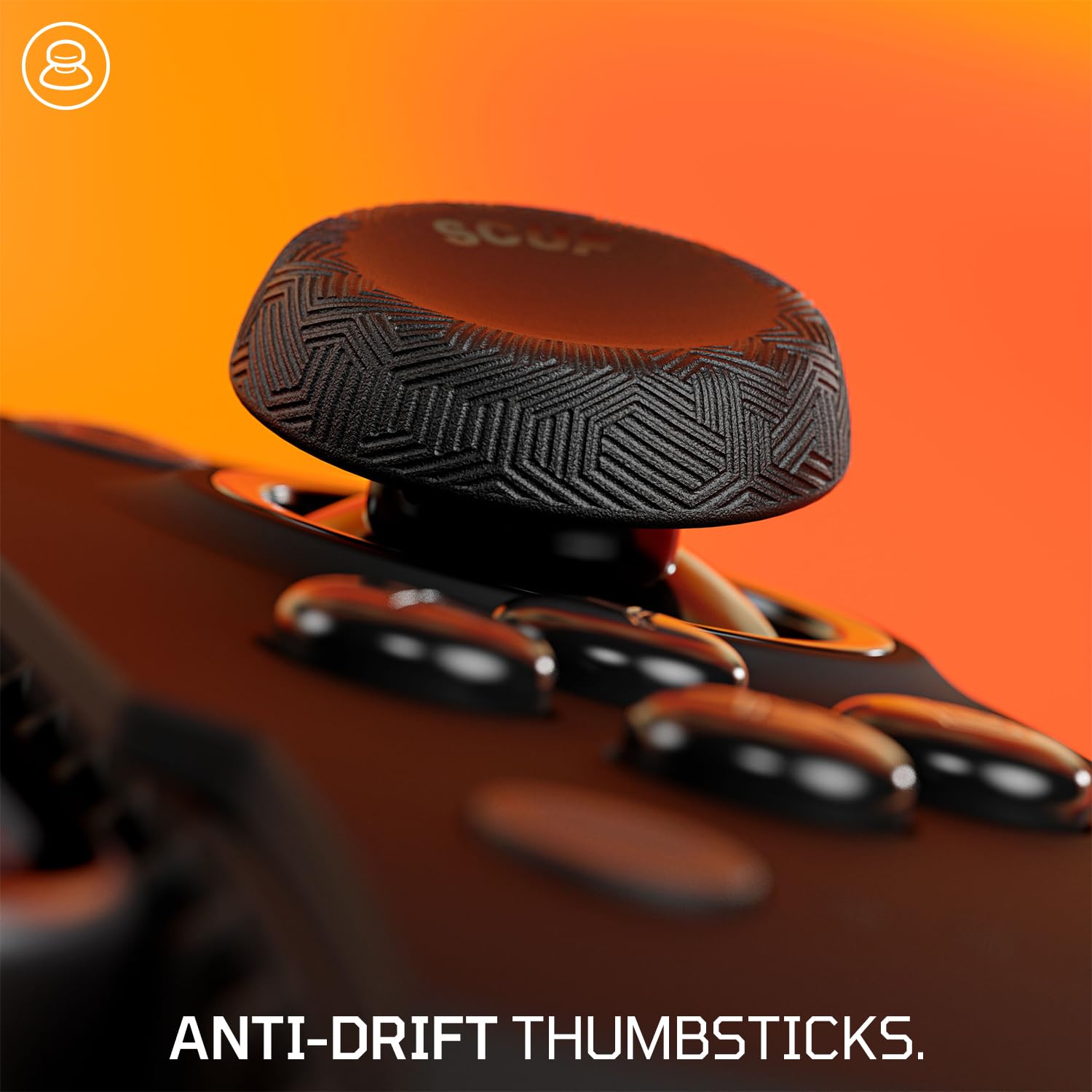 - ANTI-DRIFT THUMBSTICKS Our Hall effect thumbsticks are more durable. These full-size thumbsticks have interchangeable tops (tall, domed, and concave) to adapt to your play style. Fine-tune the sensitivity of the thumbsticks in the SCUF App to fit your style of gameplay