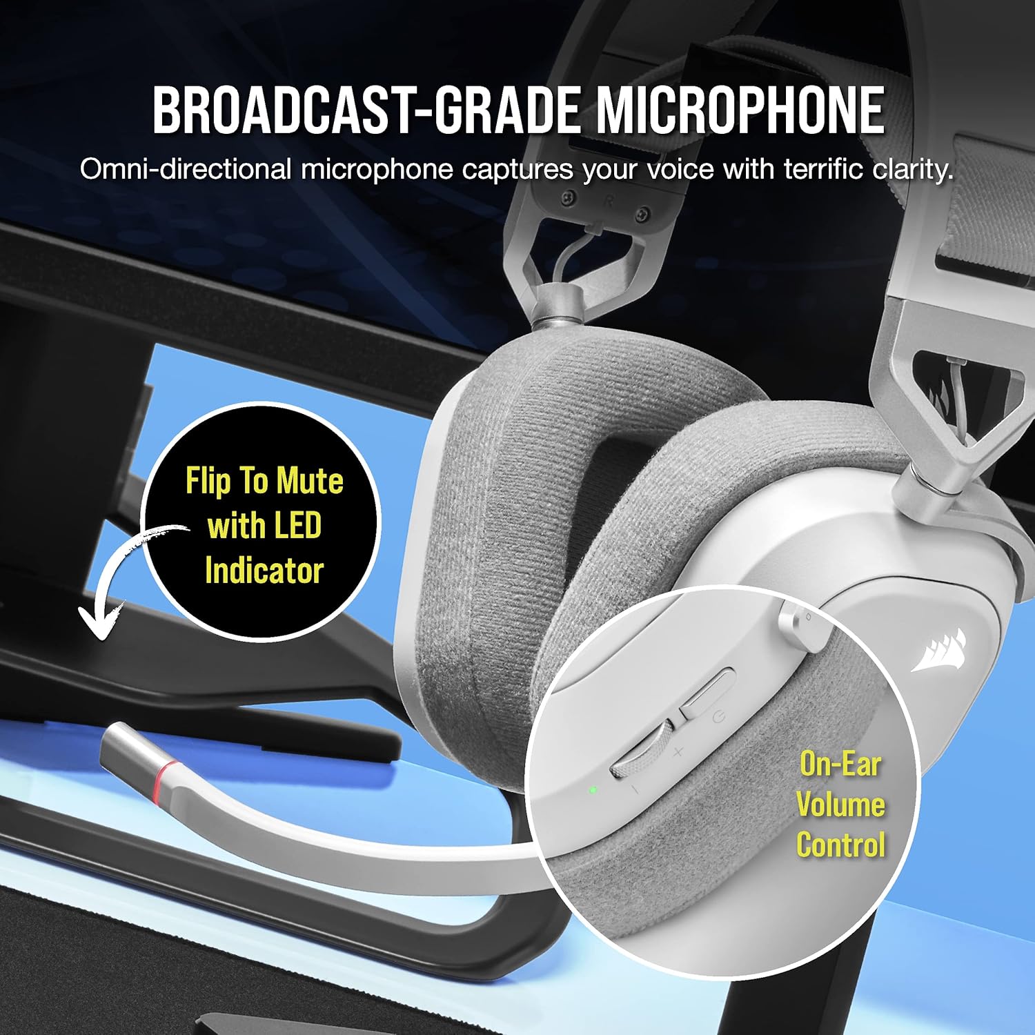 Corsair CA-8910126 HS80 RGB Wireless Gaming Headset - White (Renewed)