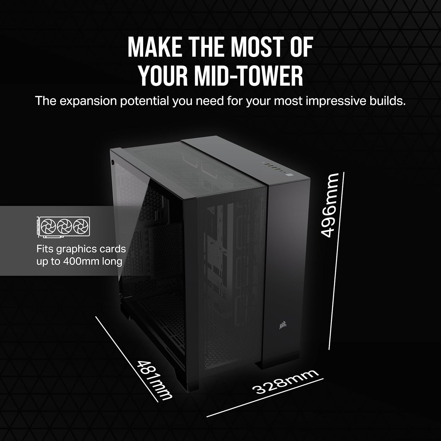 Introducing the CORSAIR 6500D AIRFLOW Mid-Tower ATX Dual Chamber PC Case. Designed for exceptional cooling and organized builds, this case features full mesh paneling and a dual chamber design. Perfect for enthusiasts and gamers.