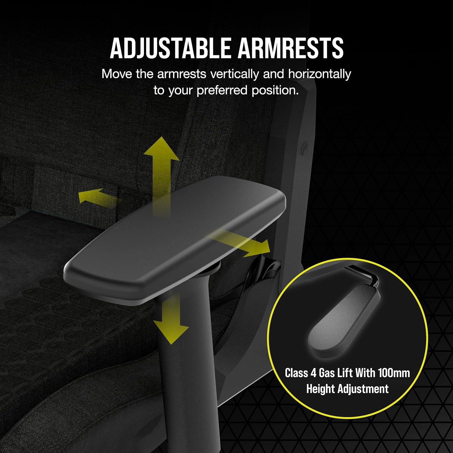 * **Brand:** Corsair * **Model:** CF-9010051-WW * **Color:** Black * **Material:** Fabric * **Dimensions:** 19.69"D x 14.96"W x 33.07"H * **Seat Width:** 375mm * **Adjustability:** 100mm Seat Height Adjustment, Adjustable Armrests, Adjustable Lumbar Pillow, Detachable Memory Foam Neck Pillow * **Recline:** 90° to 150° * **Weight Capacity:** 120 KilogramsWe partner with Amazon and other retailers to provide accurate product information and convenient access to purchase options. As an Amazon Associate we earn from qualifying purchases.