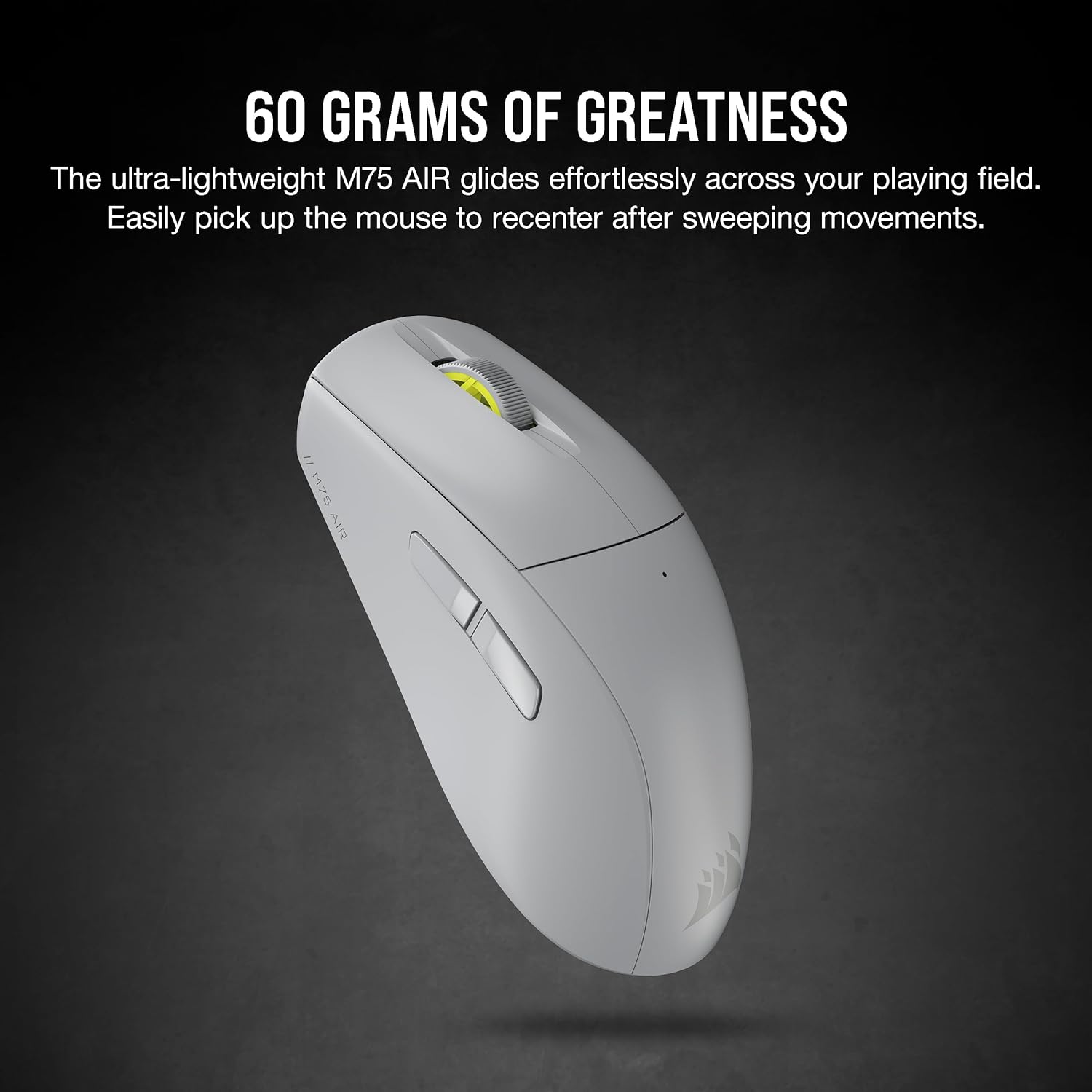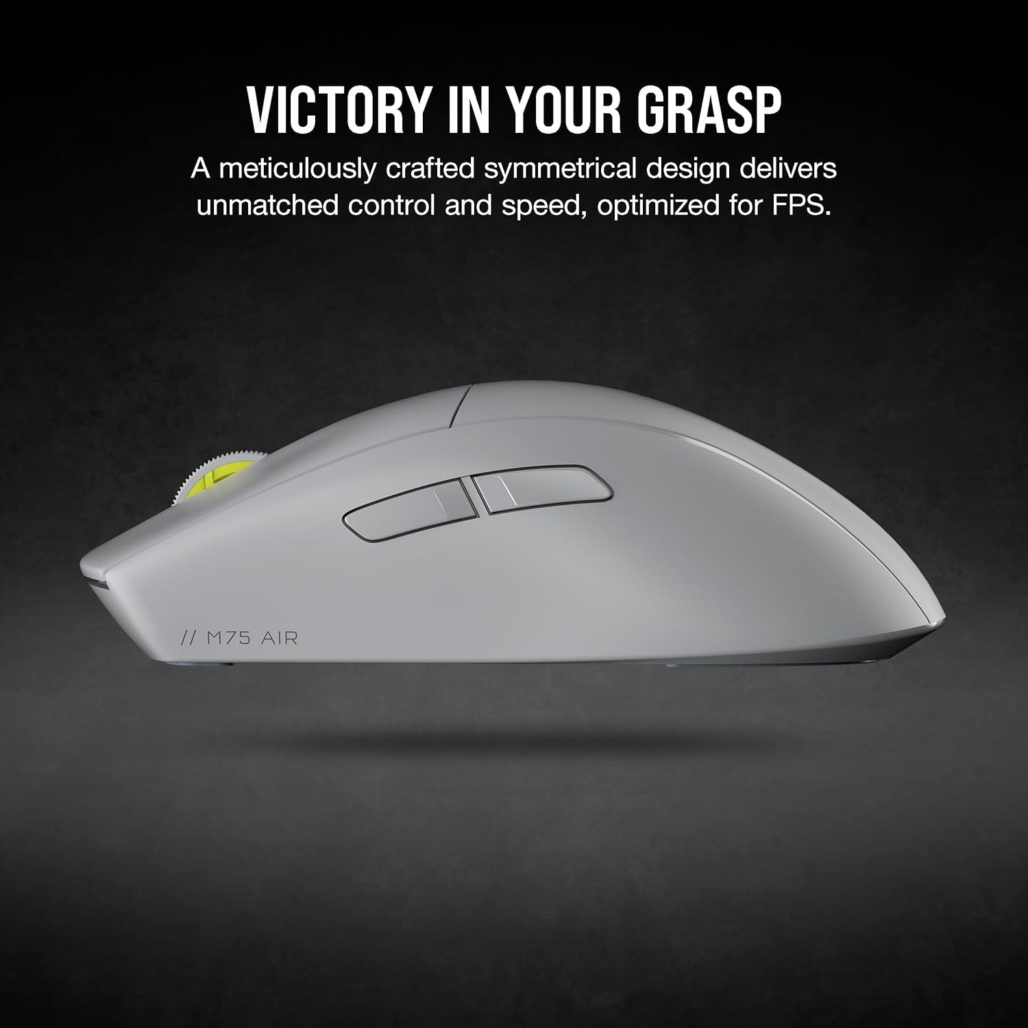 Engineered for competitive FPS gaming, the Corsair M75 AIR Wireless Ultra-Light Gaming Mouse provides unparalleled speed, precision, and control. Its symmetrical design and featherlight construction allows nothing to come between you and victory.
