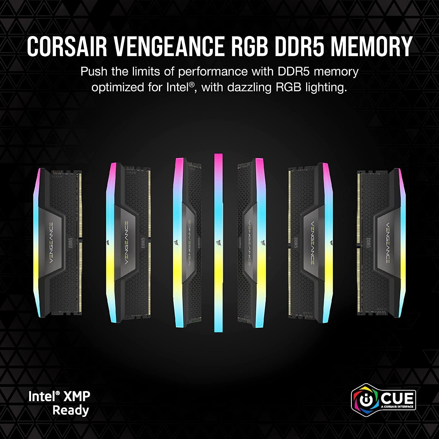 Introducing the CORSAIR VENGEANCE RGB DDR5 RAM, engineered for exceptional performance and mesmerizing aesthetics. Optimized for Intel® motherboards, this memory kit delivers faster frequencies and greater capacities. Customize your system with dynamic, individually addressable ten-zone RGB lighting.