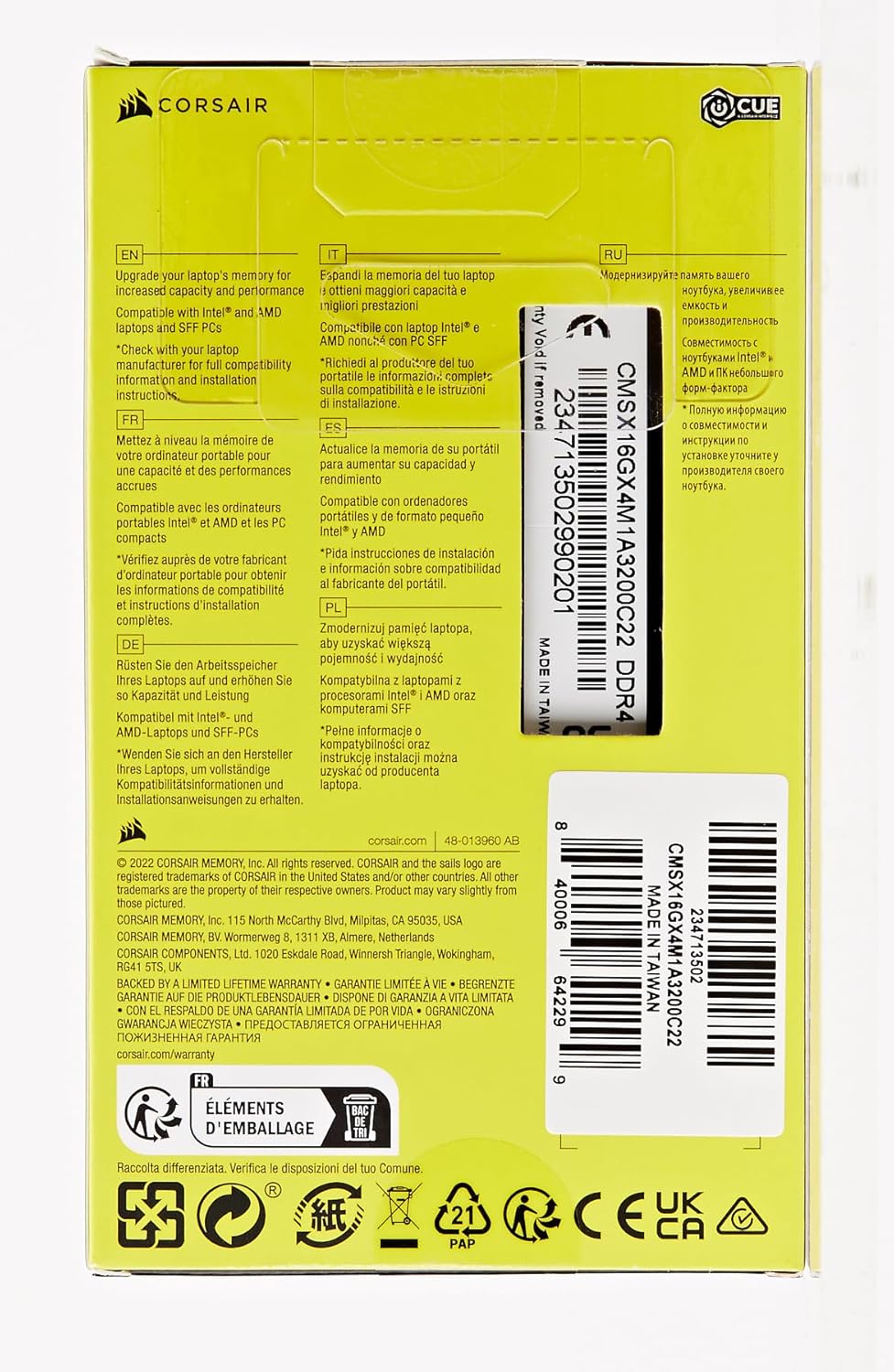 Corsair CMSX16GX4M1A3200C22 16GB Vengeance DDR4 SODIMM
