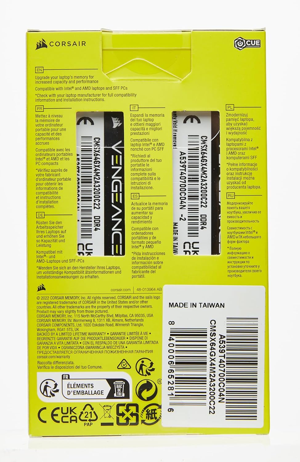 Corsair CMSX64GX4M2A3200C22 Vengeance 64GB DDR4 SODIMM AMD Ryzen
