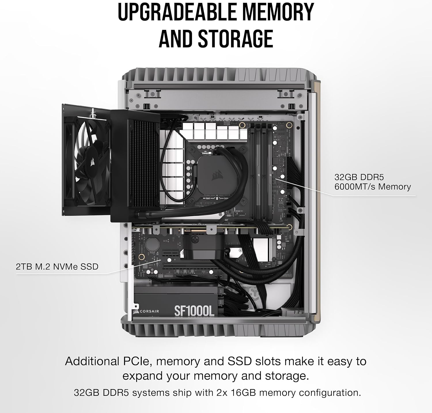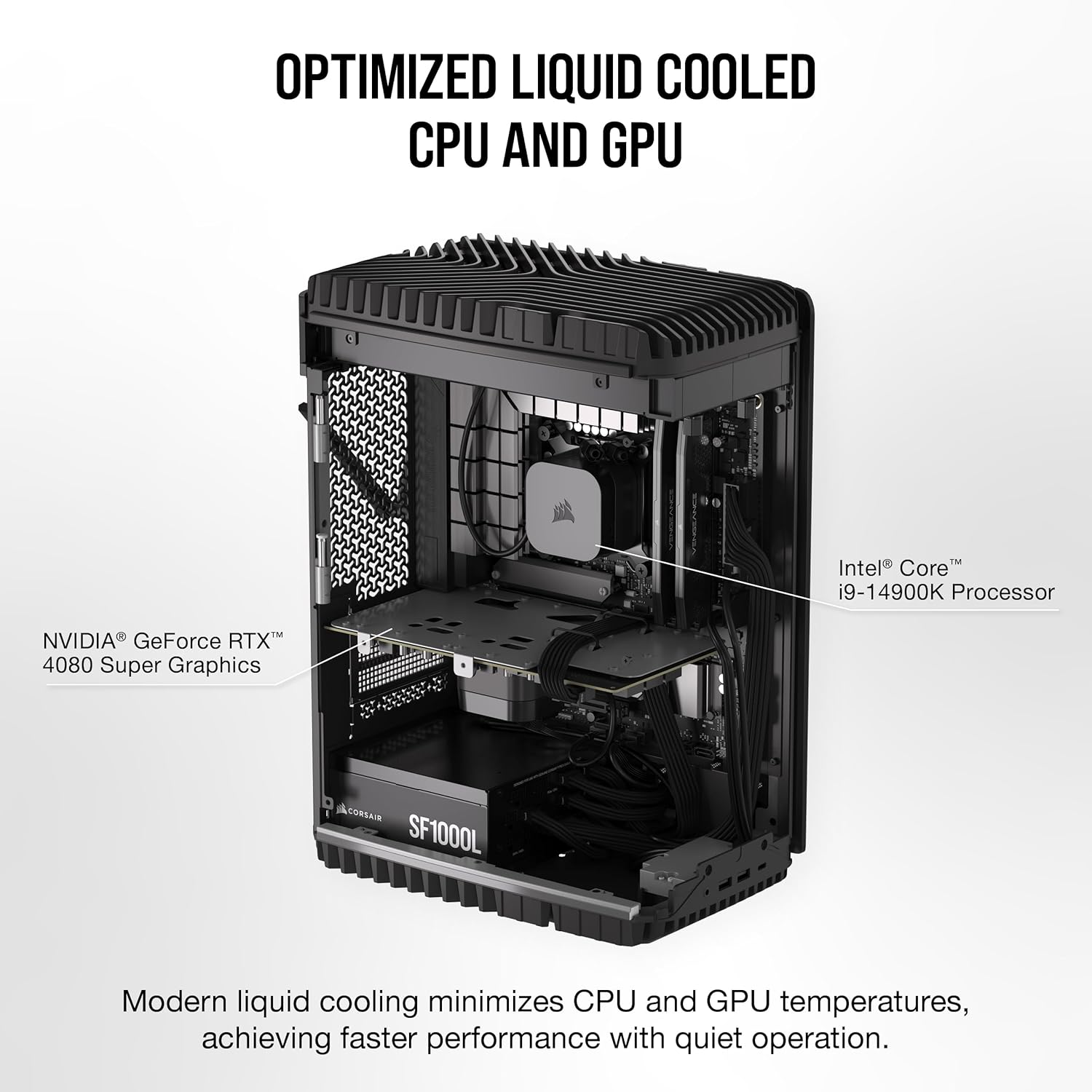 The CORSAIR ONE i500 redefines compact gaming PC performance with its liquid-cooled Intel Core i9 processor and NVIDIA GeForce RTX 4080 Super graphics card. Experience ultra-quiet operation, unrivaled graphics, and seamless multitasking in a sleek, space-saving design. Liquid Cooled.