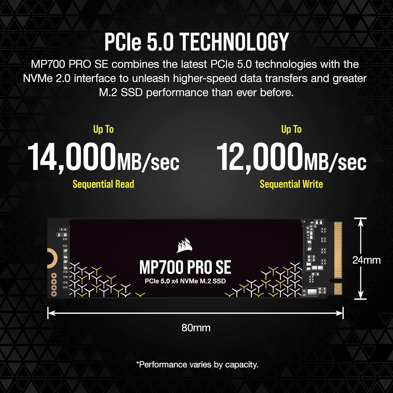 Introducing the Corsair MP700 PRO SE 4TB SSD, engineered to redefine your storage expectations. Experience lightning-fast boot times, application loading, and file transfers with the cutting-edge PCIe 5.0 technology. Designed for high-performance systems, this SSD delivers exceptional speed and reliability for gamers, content creators, and professionals.
