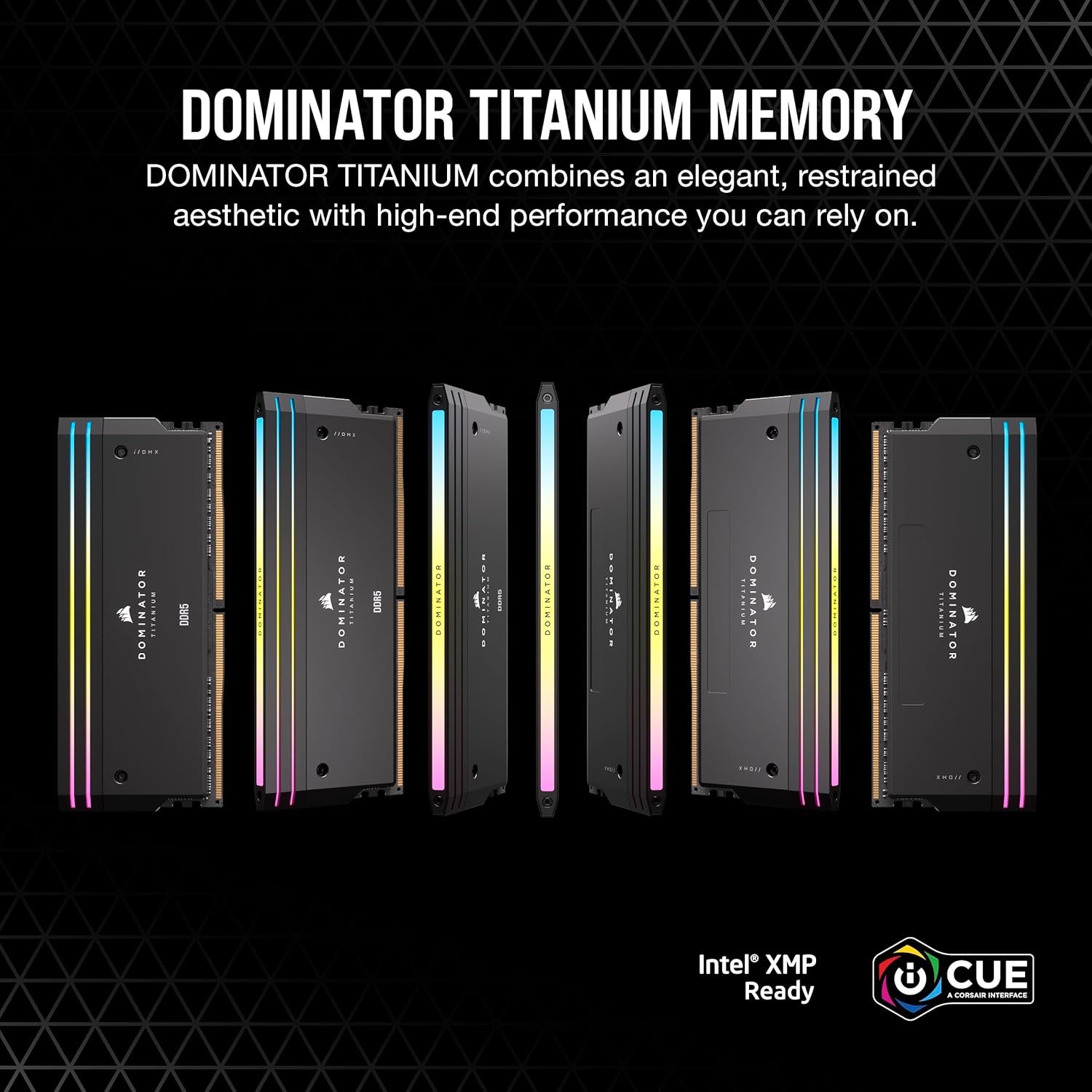 Introducing the CORSAIR DOMINATOR TITANIUM DDR5 Memory, where stunning aesthetics meet cutting-edge technology. Designed with a keen eye for detail, its clean, refined styling combines seamlessly with a premium forged aluminum construction, delivering quality you can feel. Each module features vibrant, individually addressable RGB LEDs for spectacular, customizable lighting, ensuring your PC stands out from the crowd.