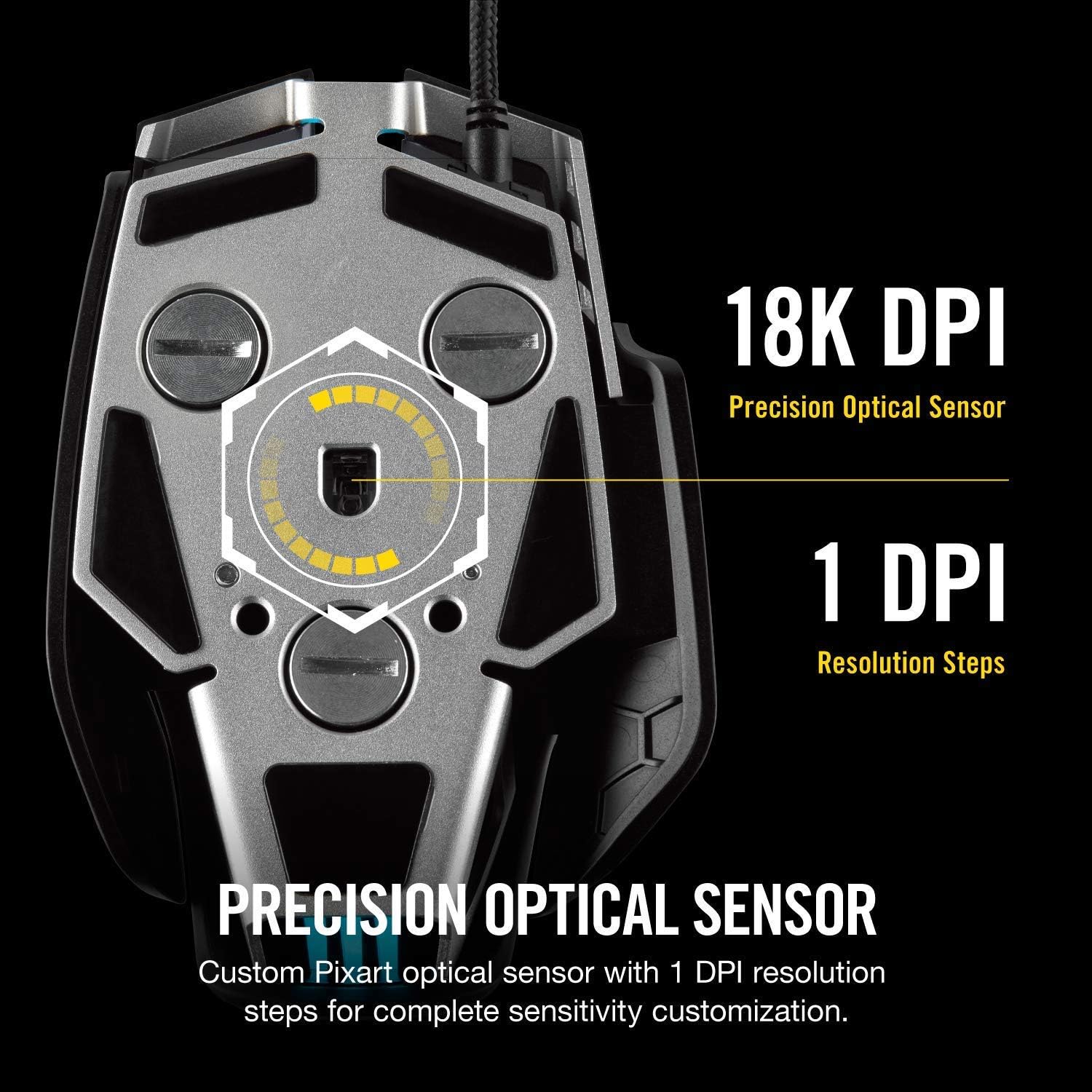 - Sensor: Native 18,000 DPI Optical Sensor (adjustable in 1 DPI resolution steps)