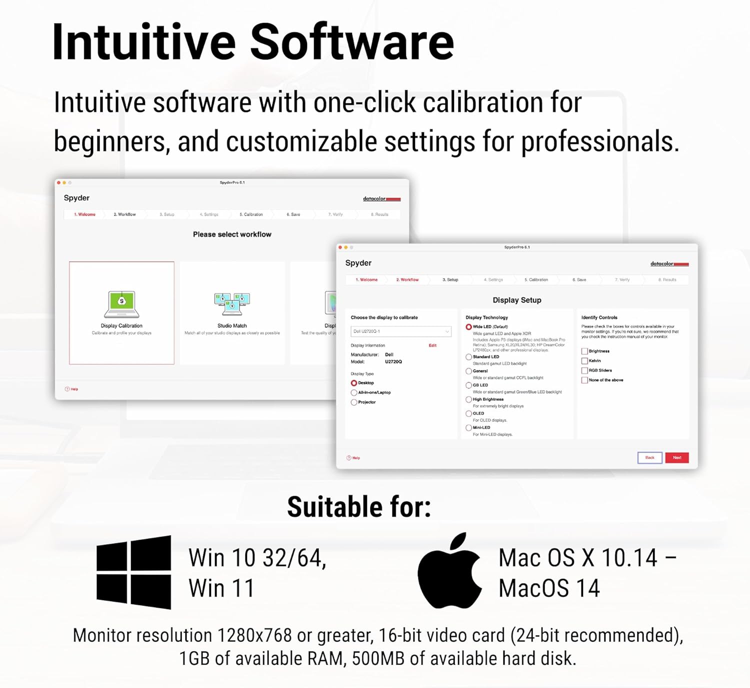 - Calibration for: OLED, mini-LED, Apple Liquid Retina XDR, and LCD displays