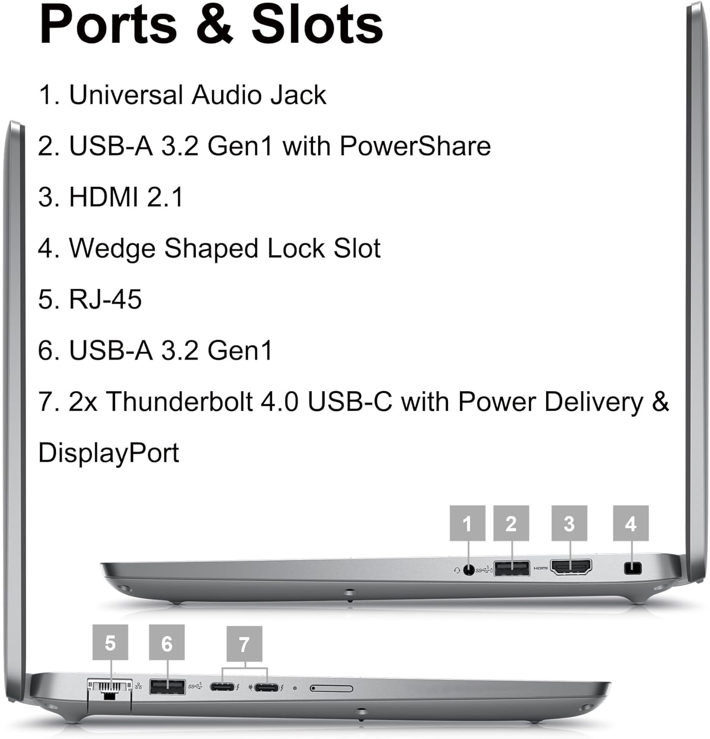 - Ports: 2 Thunderbolt 4, 2 USB 3.2 Gen 1, 1 HDMI 2.1, 1 universal audio port, 1 RJ45 Ethernet port