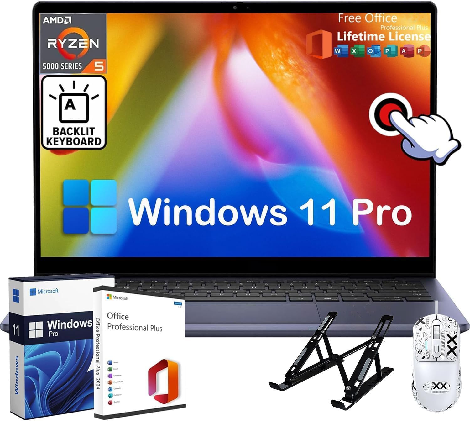 The Dell Inspiron 2-in-1 Business Laptop is designed for professionals and students seeking a versatile and powerful device. Featuring a stunning 14" FHD+ touchscreen, AMD Ryzen 5 processor, and a lifetime license for Microsoft Office, this laptop enhances productivity in any environment. **Specifications:** * **Processor:** AMD Ryzen 5 8640HS (6 Cores, up to 4.9 GHz) * **Operating System:** Windows 11 Pro * **Screen Size:** 14 inches * **Screen Resolution:** 1920 x 1200 (Full HD+) * **Touch Screen:** Yes * **Display Type:** LED, IPS * **Refresh Rate:** 60Hz * **Memory:** 16GB DDR5 RAM * **Storage:** 1TB SSD * **Graphics:** AMD Radeon (Integrated) * **Wireless Connectivity:** Wi-Fi and Bluetooth * **Ports:** 2 x USB-A 3.2, 2 x USB-C 3.2, 1 x HDMI 1.4, Headphone/Microphone combo * **Backlit Keyboard:** Yes * **Dimensions:** 12.36" L x 8.9" W x 0.74" H * **Weight:** 3.77 pounds * **Color:** BlueWe partner with Amazon and other retailers to provide accurate product information and convenient access to purchase options. As an Amazon Associate we earn from qualifying purchases.