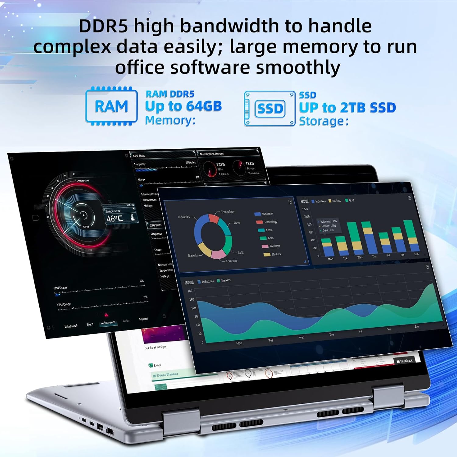 The Dell Inspiron 14 2-in-1 Touchscreen Laptop is designed to meet the needs of business professionals and students alike. Featuring a 360-degree hinge, powerful Intel Core 5 processor, and vibrant FHD+ touchscreen display, this laptop offers unparalleled versatility and performance for work and study.