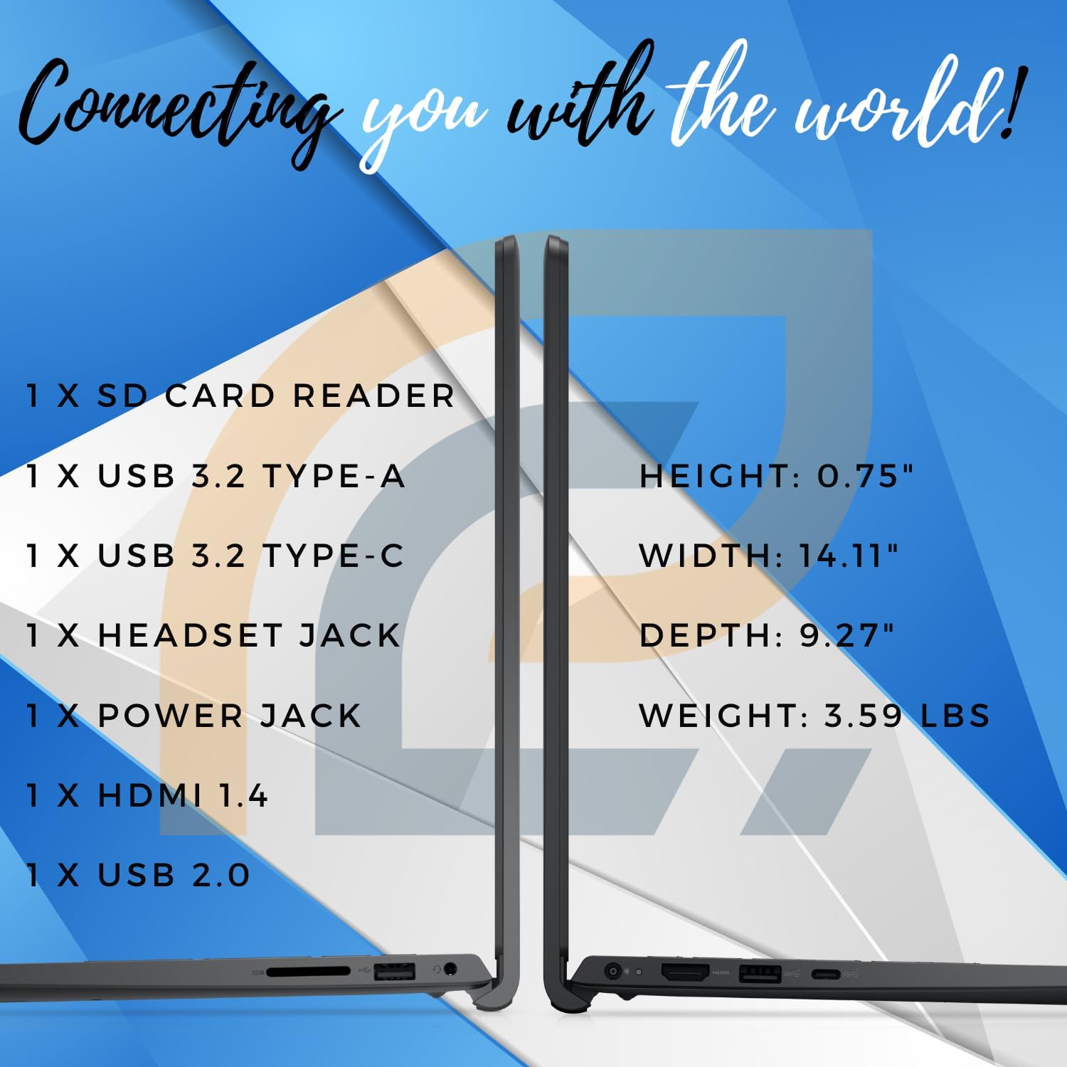 - Ports: USB-A 2.0, USB-A 3.2 Gen 1, USB 3.2 Gen 1 Type-C, HDMI 1.4, Headphone/Microphone Audio Jack