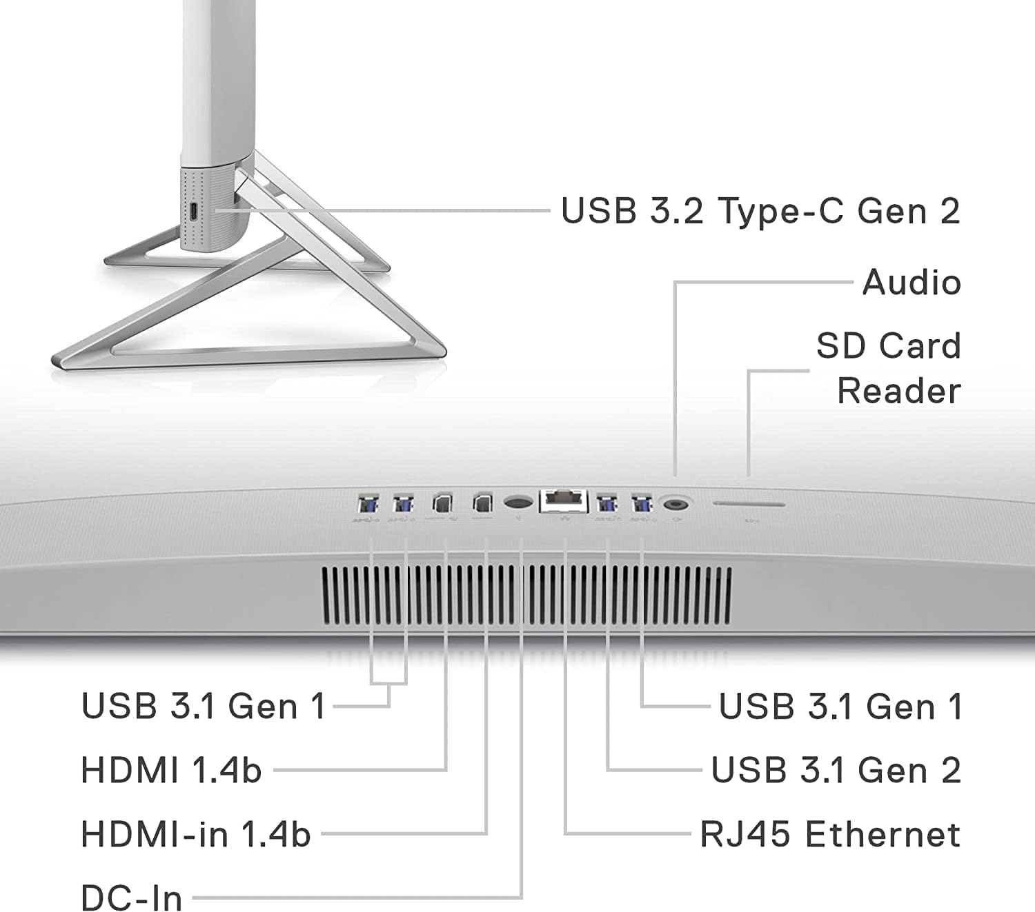 - Ports: 1x USB 3 Gen 2 Type-A, 3x USB 3 Gen 1 Type-A, 1x USB 3 Gen 2 Type-C, 1x HDMI 1.4, 1x RJ-45, 1x Headphone/Microphone Combination Jack, 1x 5-in-1 SD Card Reader 3.0