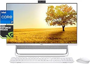 **Overview:** The Dell Inspiron 7700 All-in-One Desktop offers a seamless blend of performance and aesthetics. Featuring a 27-inch FHD Infinity Touchscreen display, 11th Gen Intel Core i7 processor, and dedicated NVIDIA GeForce MX330 graphics, this desktop is perfect for both work and entertainment. **Specifications:** * **Processor:** 11th Generation Intel Core i7-1165G7 (up to 4.7 GHz) * **Display:** 27-inch FHD (1920 x 1080) Infinity Touch Display * **Memory:** 32 GB DDR4 SDRAM * **Storage:** 2 TB SSD * **Operating System:** Windows 10 Home 64-bit * **Graphics:** NVIDIA GeForce MX330, 2GB * **Audio:** Stereo Speakers with Waves MaxxAudio Pro * **Wireless:** Intel® Wi-Fi 6 2x2 (Gig+), Bluetooth 5.1 * **Ports:** 1 RJ-45, 1 USB 2.0, 2 USB 3.1 Gen 1, 1 USB 3.1 Gen 2 Type-C, 1 Microphone/Headset Jack, 1 HDMI-out (1.4), 1 HDMI-in * **Webcam:** Pop-Up Webcam * **Keyboard & Mouse:** White Dell KM636 Wireless Keyboard & Mouse * **Dimensions:** 17.84" x 24.08" x 1.65" * **Weight:** Starting at 15.5 lbsWe partner with Amazon and other retailers to provide accurate product information and convenient access to purchase options. As an Amazon Associate we earn from qualifying purchases.