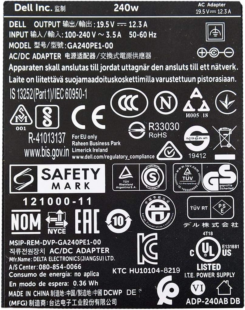 The Dell AC Adapter provides a reliable and efficient power supply for your compatible laptop. With a 240W output and included power cord, this original adapter ensures your device stays charged and ready to perform.
