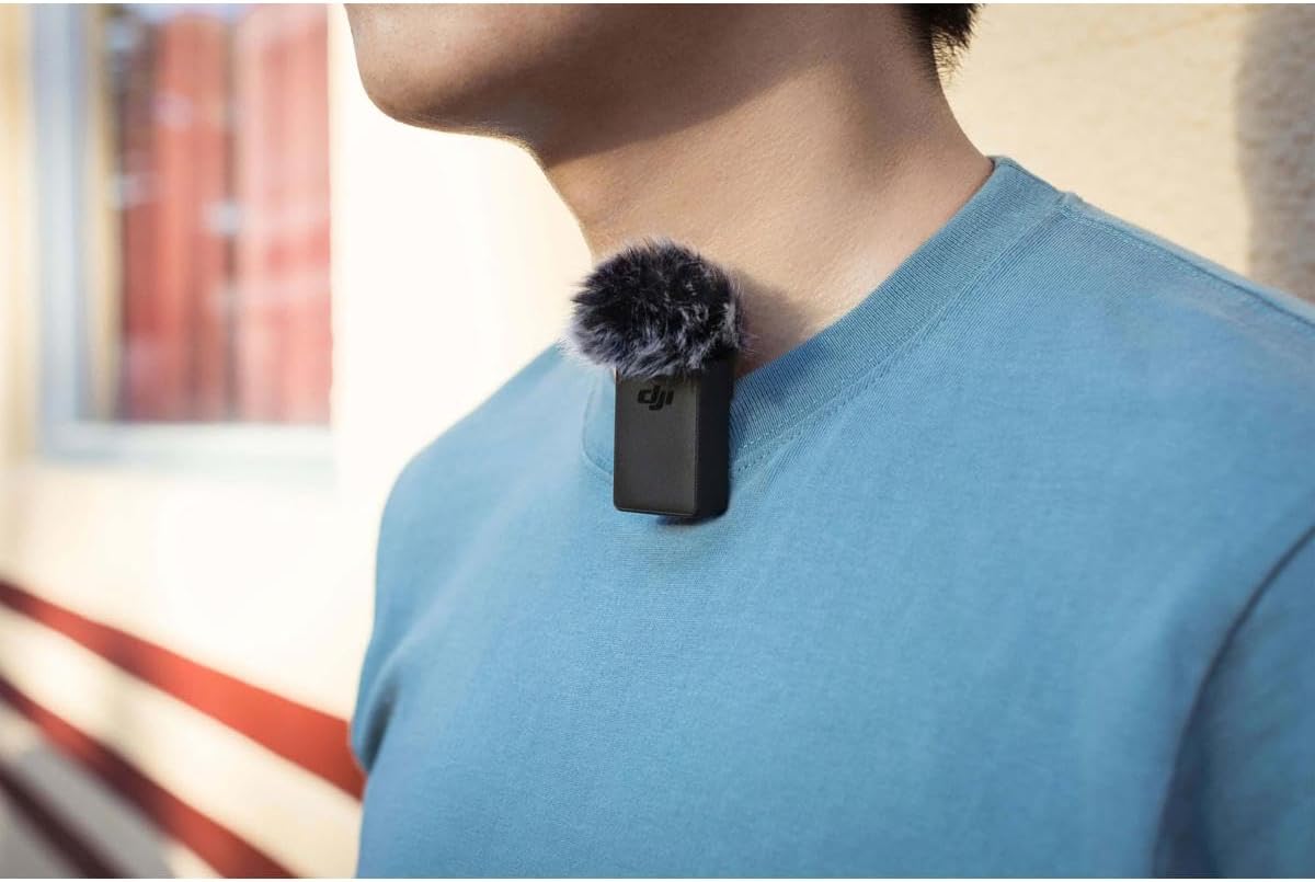 The DJI Wireless Microphone Transmitter connects to an external microphone, enabling wireless audio signal transmission to your DJI Pocket 2. This eliminates the need for extra wiring and improves audio quality.