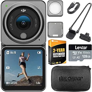 * **Video Resolution:** Up to 4K/120fps * **Field of View:** 155° Super-Wide FOV * **Stabilization:** HorizonSteady * **Durability:** Drop-proof, dustproof, and waterproof up to 10 meters * **Connectivity:** Magnetic design for quick accessory interchange * **Modules:** Front Touchscreen Module (optional) * **Included Accessories:** Power Module, Magnetic Lanyard, Magnetic Adapter, Power Cable * **Additional Items:** DJI Magnetic Protective Case, Lexar 128GB MicroSDXC Memory Card, Deco Gear 5" Hard EVA CaseWe partner with Amazon and other retailers to provide accurate product information and convenient access to purchase options. As an Amazon Associate we earn from qualifying purchases.
