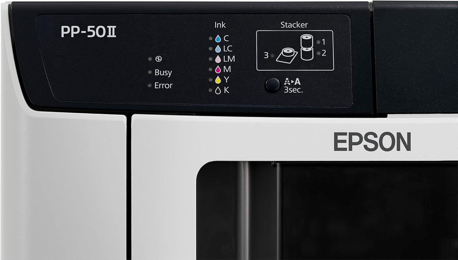 The Epson Discproducer PP-50II is the perfect choice for businesses requiring professional CD, DVD, or Blu-ray disc publishing and printing. With its reliable performance, high-quality printing, and low total cost of ownership, the PP-50II offers easy, unattended production of multiple types of discs. Epson's MicroPiezo inkjet technology ensures crisp text and vibrant graphics, making it ideal for healthcare, legal, and music industries.