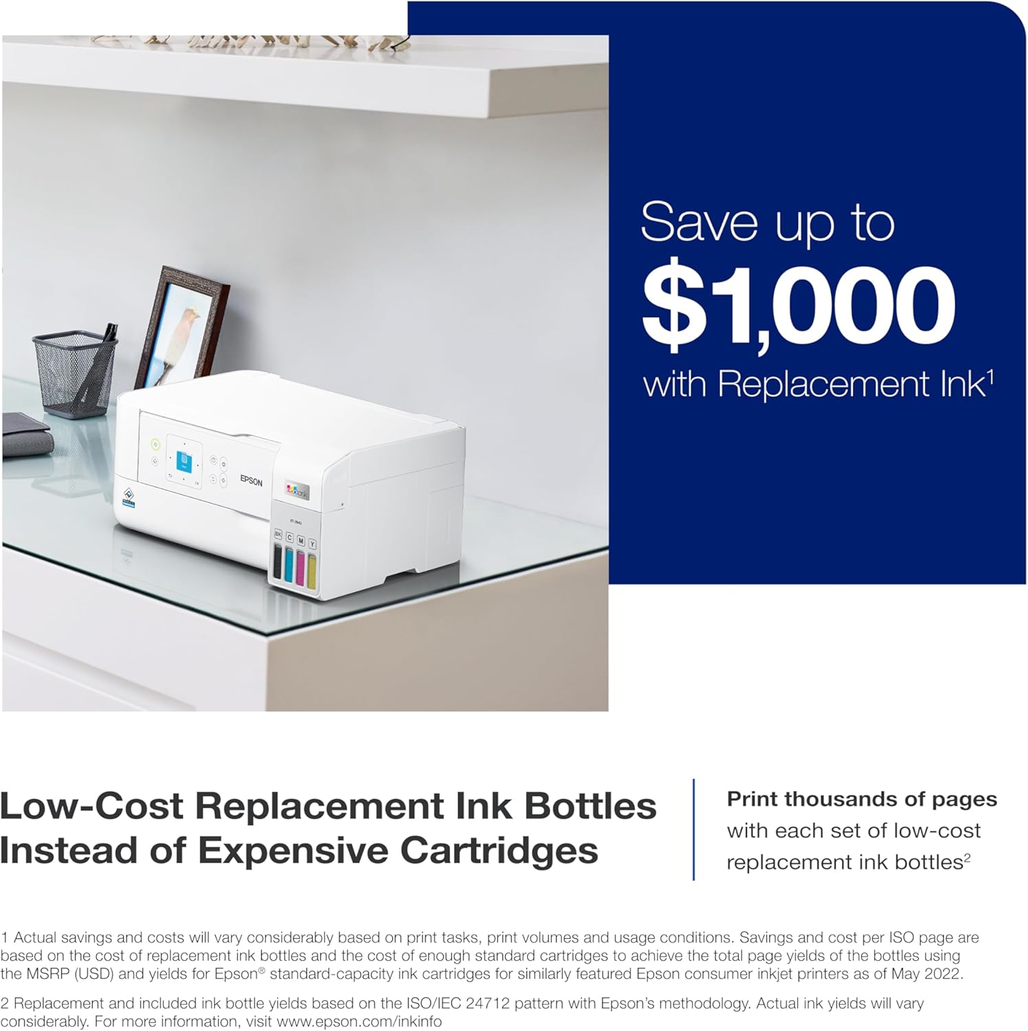 Revolutionize your home printing experience with the Epson EcoTank ET-2840. This cartridge-free, all-in-one printer features high-capacity ink tanks that are easy to refill, offering worry-free printing and dramatic savings on replacement ink. Perfect for everyday home use, it delivers fast print speeds, outstanding quality, and convenient features like wireless connectivity and voice-activated printing.