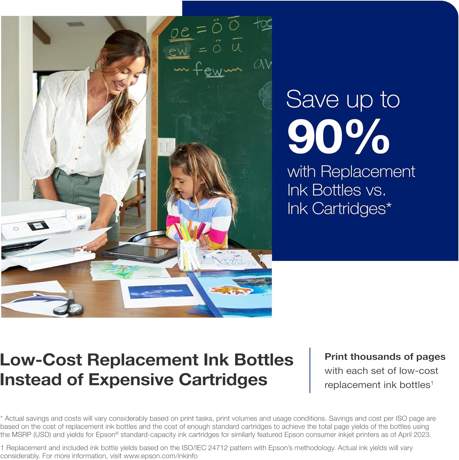 - Ink Yield: Up to 7,500 pages black/6,000 color with replacement ink bottles