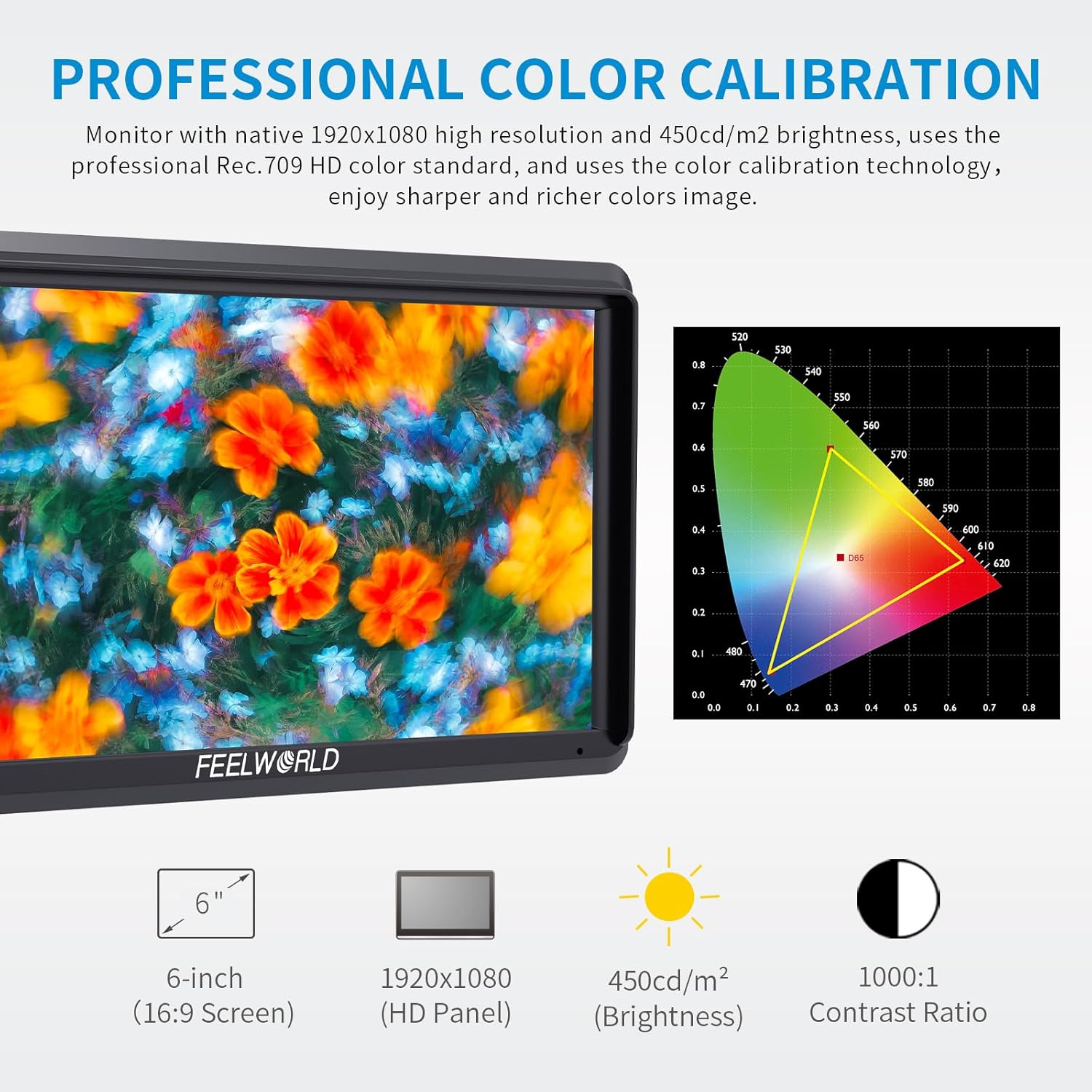 The FEELWORLD S55V2 is a compact and powerful 5.5-inch on-camera monitor, bundled with an F550 battery and a protective bag. This monitor delivers Full HD resolution, 4K HDMI input/output, and custom 3D LUT support, making it an essential tool for filmmakers and videographers who demand precision and flexibility.